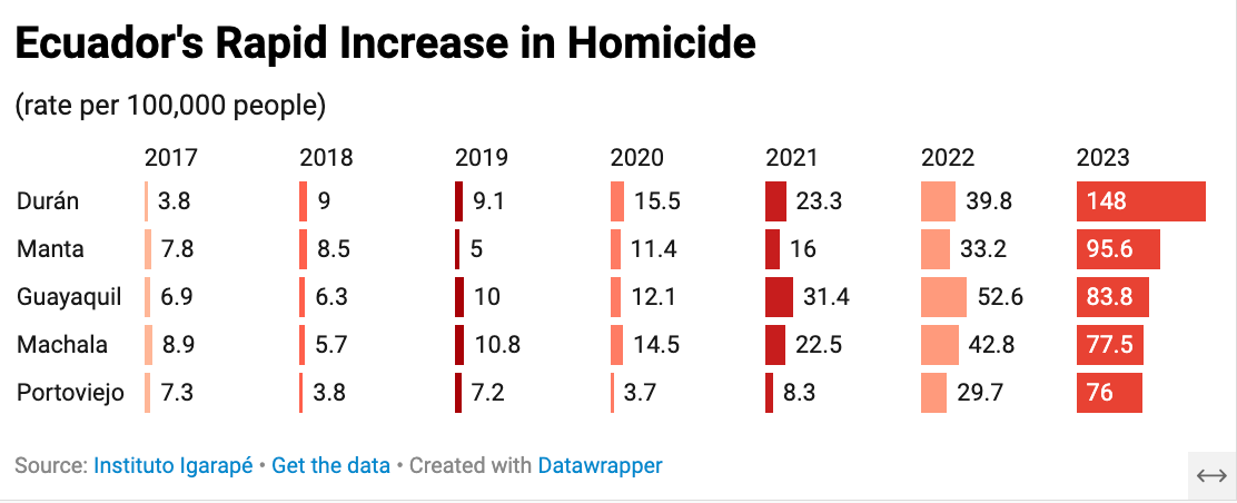 In the last few years, multiple FARC dissident groups crossed the border into Ecuador to vie for power and heavily contributed to the massive spike in violence.