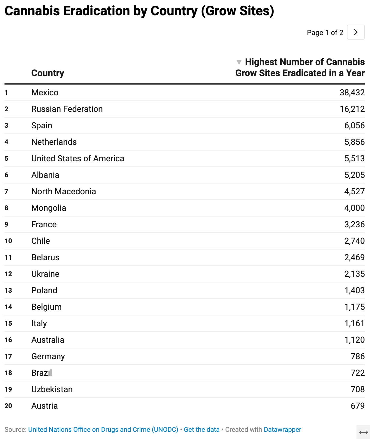 Not all countries have comprehensive reporting or effective eradication efforts, but the seizure data alone demonstrates that there is a broad global production market for marijuana and methamphetamine: