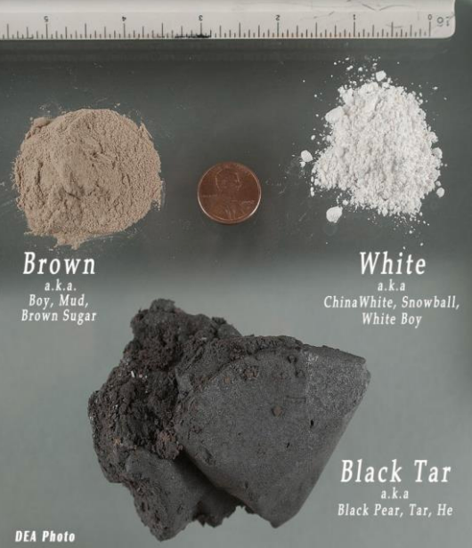 Mexico (product is black in color) (Colombia hasn’t produced a notable level of heroin since 2018.)